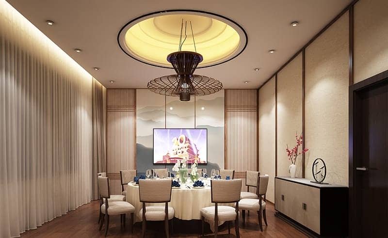 設(shè)計(jì)方案響應(yīng)業(yè)主訴求,以中式意味為主要方向,擯棄中式元素堆砌,以配色、造型求得所想。