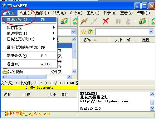 1.運(yùn)行 FlashFXP,點(diǎn)擊會(huì)話->快速連接