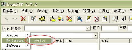 5.您可以點擊上圖5處“連接”按鈕,直接進入連接狀態(tài);也可以回到主菜單點擊 “FTP 服務(wù)器”-> “My Servers” -> “mysite” 進入連接狀態(tài)。
