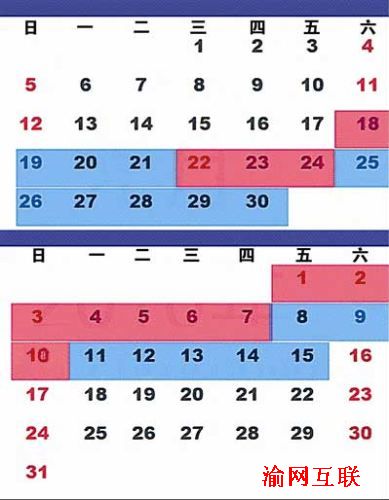 注:紅色部分為假日,藍(lán)色部分為工作日