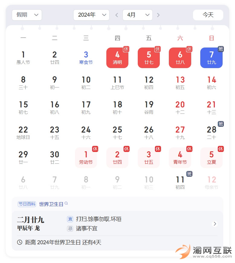 根據(jù)國(guó)務(wù)院辦公廳相關(guān)的最新安排,2024年清明節(jié)放假3天,4月4日至6日放假,4月7日(星期日)上班。
