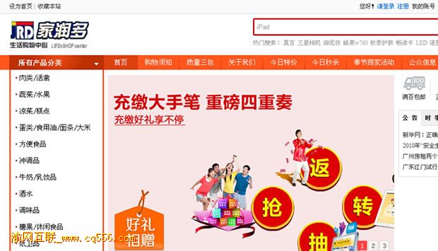 奉節(jié)縣家潤多生活購物中心,網(wǎng)上訂購系統(tǒng),由重慶網(wǎng)絡(luò)公司渝網(wǎng)互聯(lián),設(shè)計制作完畢。